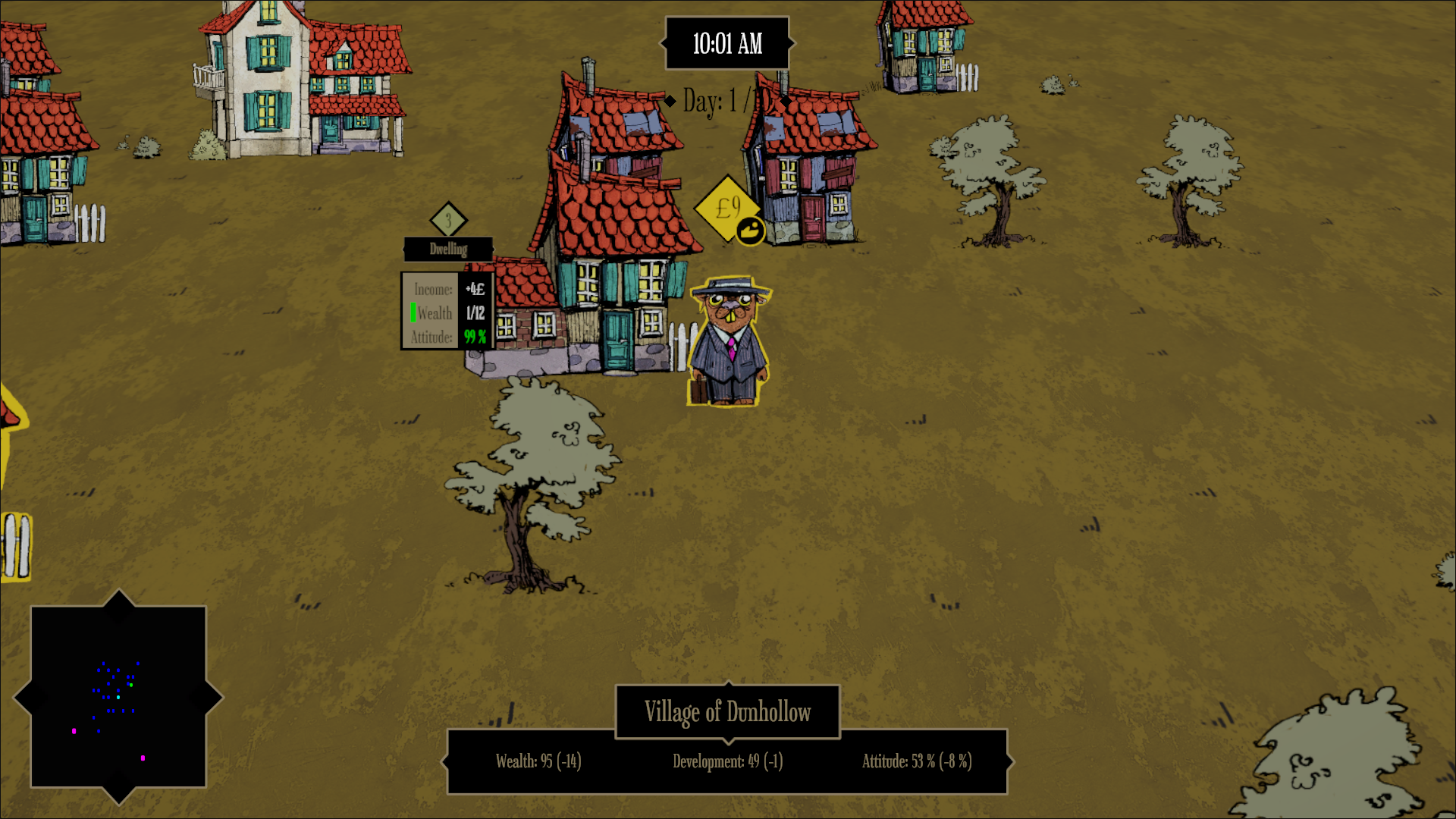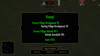 Every night, the village is under attack by mysterious dark forces. As a newly appointed bailiff, you have to build shrines to protect the inhabitants of the village. The problem is that shrines require significant funds to be built, so you must collect taxes every day. And people do not like taxes.